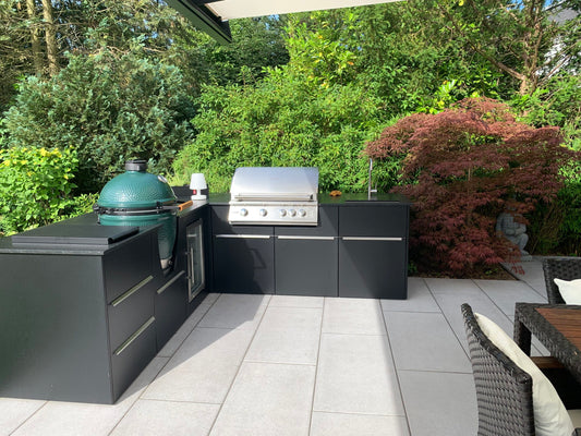 Elements 601: Stort udekøkken med Kamado-modul, gasgrill, køleskab, induktionskogeplade og vask