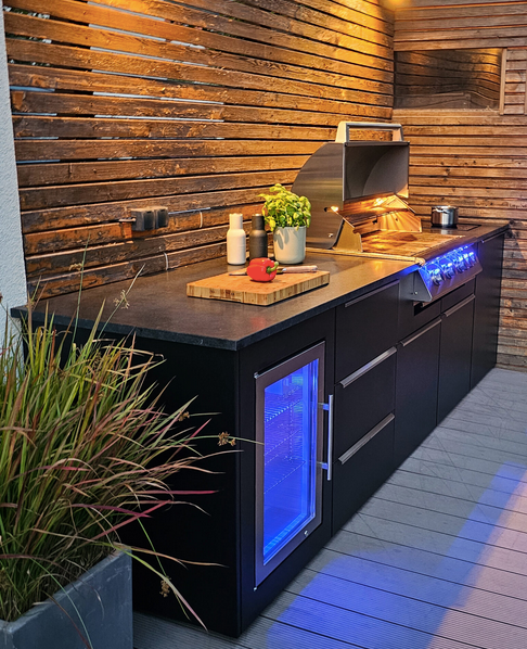 Elements 301: Sort udekøkken med køleskab og modul til Kamado-grill