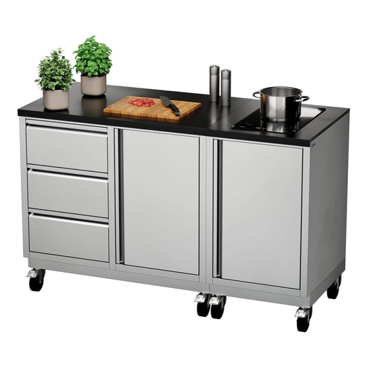 Mobilt udekøkken i rustfrit stål med kogeplade og opbevaring