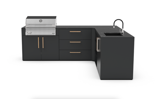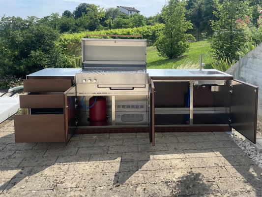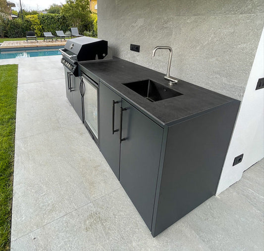Et udekøkken med vask giver dig den ultimative frihed til at lave mad under åben himmel uden at skulle gå frem og tilbage til køkkenet indenfor. Skyl de friske grøntsager, rengør grillredskaberne eller vask dine hænder nemt og bekvemt – alt sammen under den åbne himmel. Se vores udvalg af udekøkkener med vask lige her på siden eller bestil et designforslag, hvis vi skal give dig et par idéer.