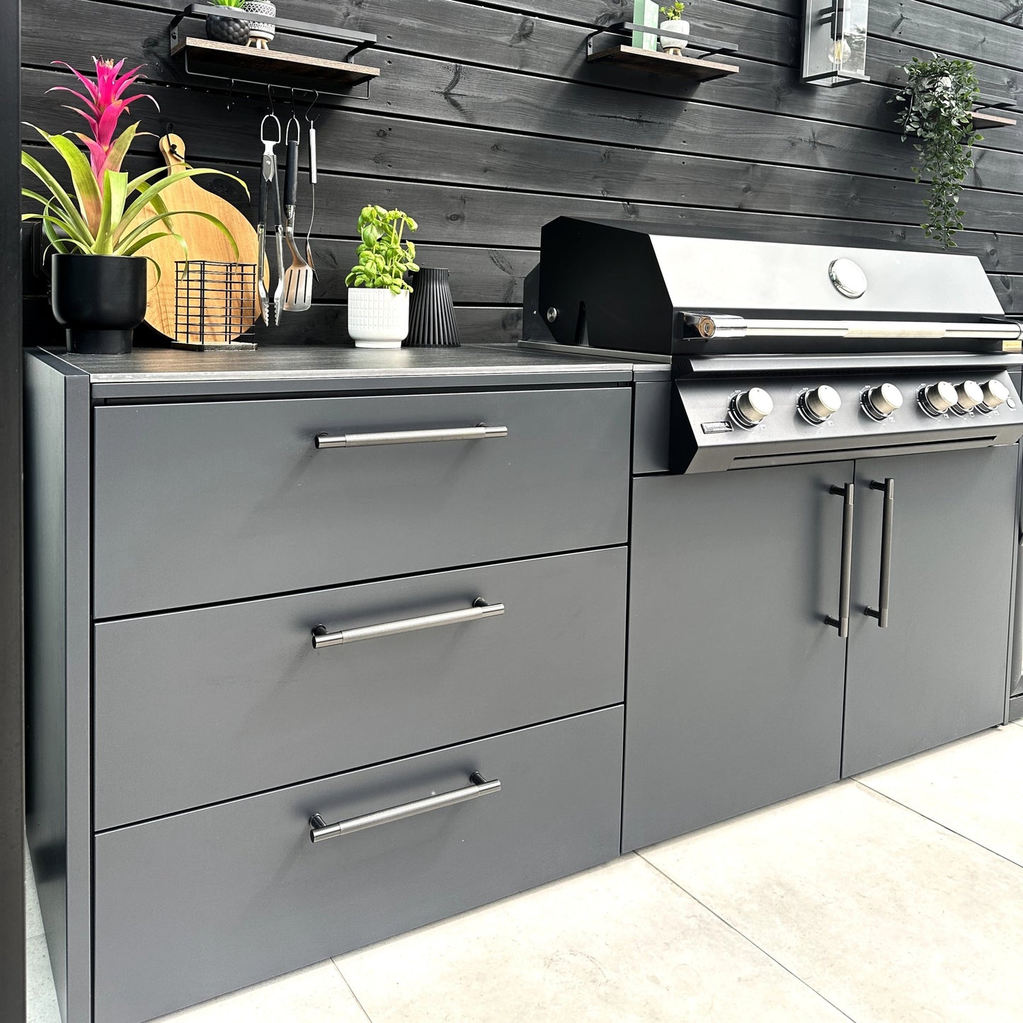 Brabura kombinerer elegance og funktionalitet i dette modulopbyggede udekøkken, som er designet til at skabe gode minder i det fri, når du gerne vil samles med venner og familie om god mad i det danske sommervejr.