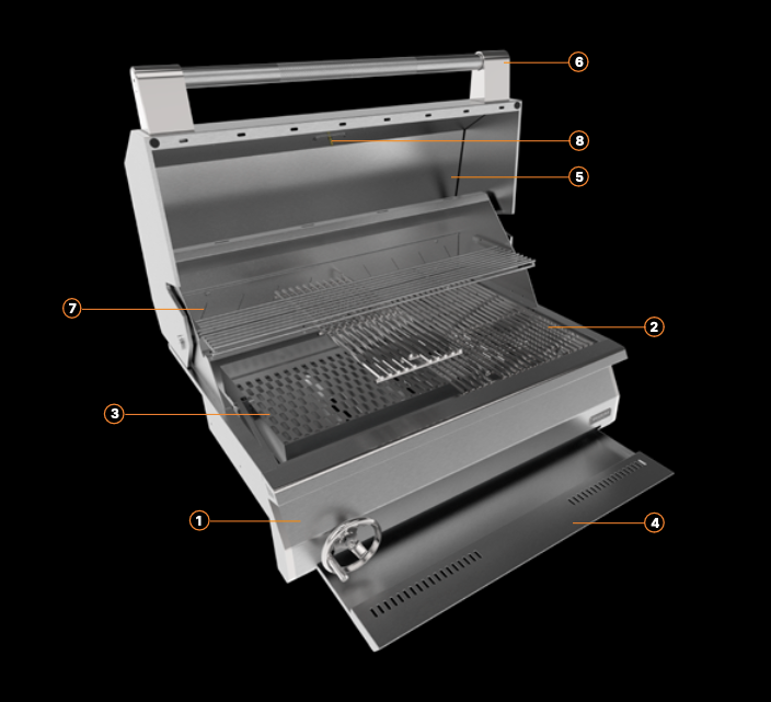 Ember 800 kulgrillen passer til Braburas indbygningsmodul, som kan købes her.